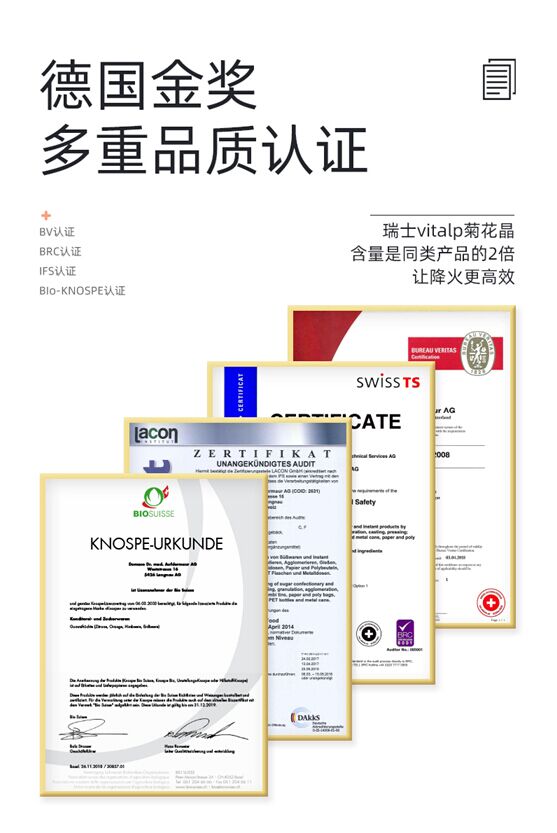 維多普小熊菊花晶取材自阿爾卑斯山脈優(yōu)質(zhì)洋甘菊,并從中萃取雙倍菊花晶成分,是市面上同類產(chǎn)品的雙倍。采用制藥級(jí)生產(chǎn)工藝,安全,更讓寶媽們放心。成分中無蔗糖、無防腐劑、無過敏源等物質(zhì),品質(zhì)方面多重保障。冬季寒冷干燥,孩子上火現(xiàn)象常見,維多普小熊菊花晶可迅速在水中溶解,為孩子及時(shí)提供清甜的清火飲品。冬季家庭聚餐常食用火鍋等辛辣食品,成人也可以通過飲用菊花晶降火,呵護(hù)腸胃健康。