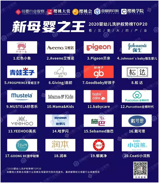?。笅胄袠I(yè)觀察:2020嬰幼兒洗護(hù)權(quán)勢榜20強(qiáng))