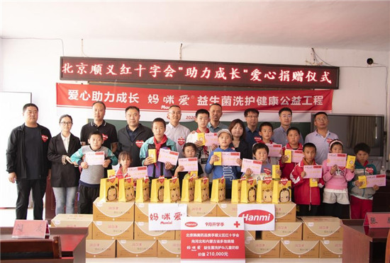 2020年6月,六一圓夢(mèng)心連心,媽媽的愛,我們“童”在!北京韓美藥品聯(lián)合順義區(qū)紅十字會(huì)、區(qū)婦聯(lián),共同開展“愛相伴 ?助成長”——媽咪愛益生菌洗護(hù)“六一”公益捐獻(xiàn)活動(dòng)。走進(jìn)順義淺山五鎮(zhèn)為60名貧困在校生送上溫暖的節(jié)日禮物與祝福。