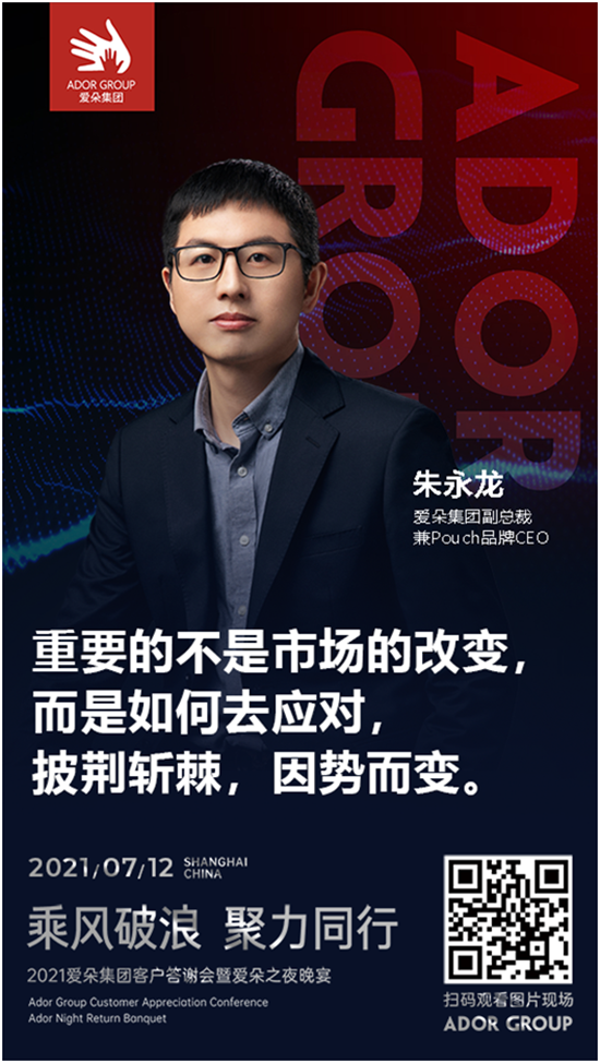 愛朵集團(tuán)副總裁兼Pouch品牌CEO朱永龍先生從人口結(jié)構(gòu)、銷售渠道、消費(fèi)人群、市場容量方向?yàn)閰钨e帶來耐用品市場發(fā)展趨勢的分析,并同現(xiàn)場嘉賓分享了Pouch的品牌理念與運(yùn)營策略。作為愛朵集團(tuán)的元老級品牌“Pouch”,自2009年面世以來,始終不忘初心,堅(jiān)持優(yōu)化產(chǎn)品核心性能,在外觀主題和材料結(jié)構(gòu)上求新、求變,為用戶帶來一次又一次的蝶變與驚喜。
