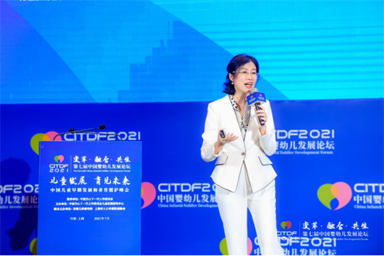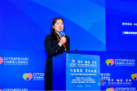 中國關(guān)心下一代工作委員會兒童發(fā)展研究中心中國嬰幼兒發(fā)展論壇項(xiàng)目辦公室主任王立華做主題演講