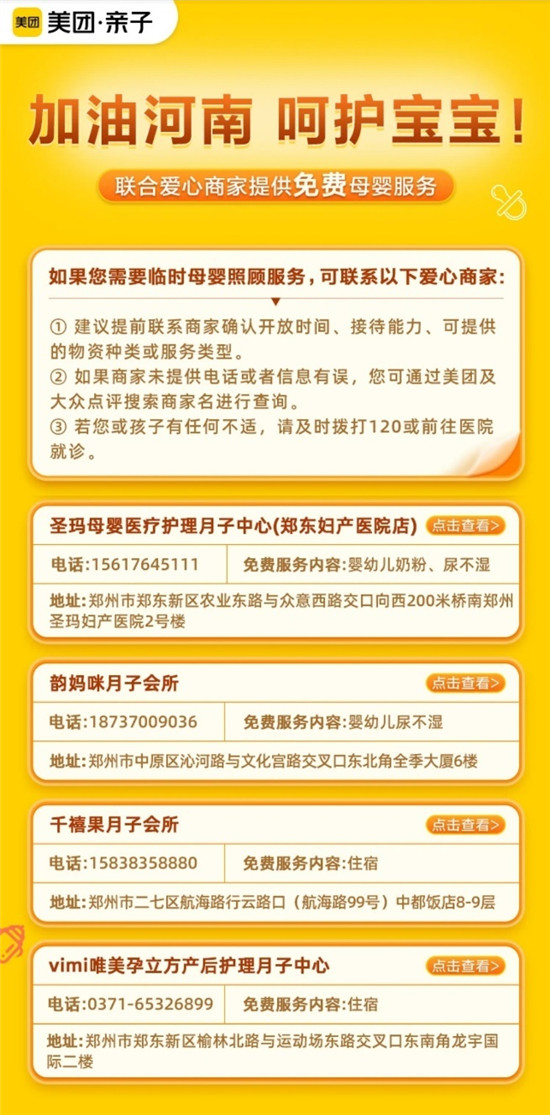 河南加油!美團(tuán)親子聯(lián)合愛心商家提供免費(fèi)母嬰服務(wù)
