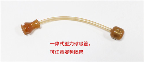 除了常規(guī)的防塵蓋、奶嘴等配件,其中最引入注目的配件是一體式重力球吸管。該吸管容易清洗,不容易滋生細(xì)菌,加上全硅膠包裹的不銹鋼重力球,能滿足寶寶任何角度喝奶和喝水,360°暢飲。