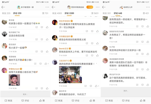 在作品熱播收獲大批“小小粉絲”后,不少寶爸寶媽表示“等不及要看《小狼樂賓》了”,“要和家里小朋友一起看這個(gè)動(dòng)畫片”,并同步種草刷屏了超過40個(gè)媽媽團(tuán)社群,收獲了廣泛的期待與肯定,很多寶媽表示“回家就得安排”!