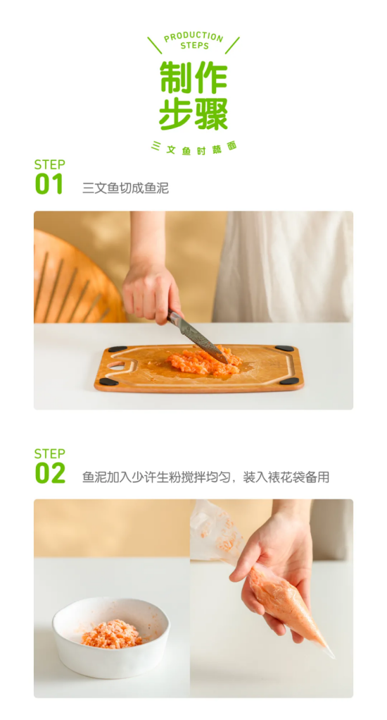 1、如果怕麻煩,或者是為了給小月齡的孩子吃,可以直接用小皮的三文魚泥替代。