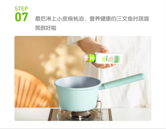 STEP 07 最后淋上小皮核桃油,營養(yǎng)健康的三文魚時蔬面就做好啦!