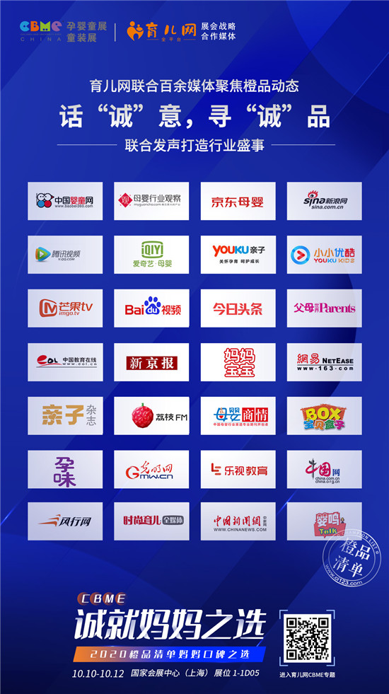 2020年10月10日,第20屆CBME中國孕嬰童展、童裝展在國家會展中心(上海)正式開展。育兒網(wǎng)作為CBME長期戰(zhàn)略合作媒體,再次攜橙品清單登陸2020CBME,以「2020誠就媽媽之選」為切入點(diǎn),同時(shí)開展2020橙品清單媽媽口碑之選與2020CBME系列參展活動。
